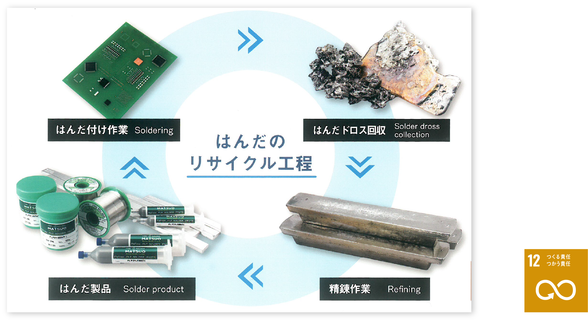 はんだドロスを回収・精錬し、はんだ材料のリサイクル・リユースを推進しております。