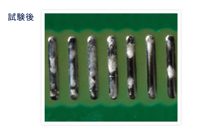 コテ先温度が430℃と非常に過酷な条件で試験を実施しましたが、新規活性剤の採用により、はんだキレ性が良好で、ブリッジ・つのの発生を抑制出来ます。